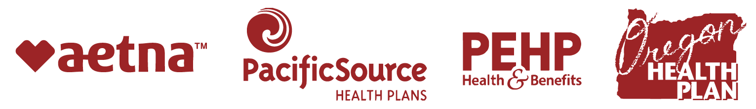 Aetna, Pacific Source, Public Employees Health Plan (PEHP) and Open Card with Oregon Health Plan. (*no longer in network with Regence/BXBS 4/2023)